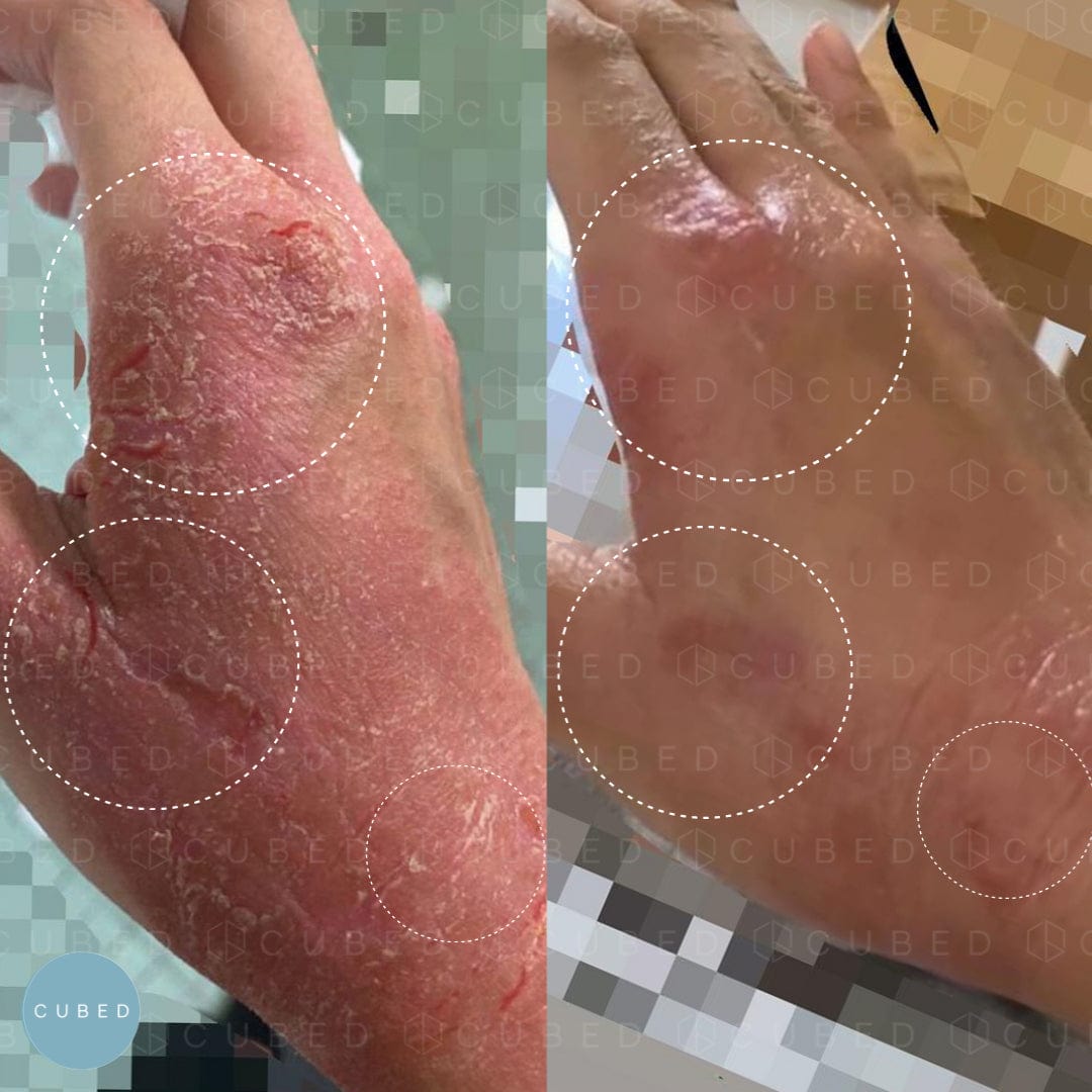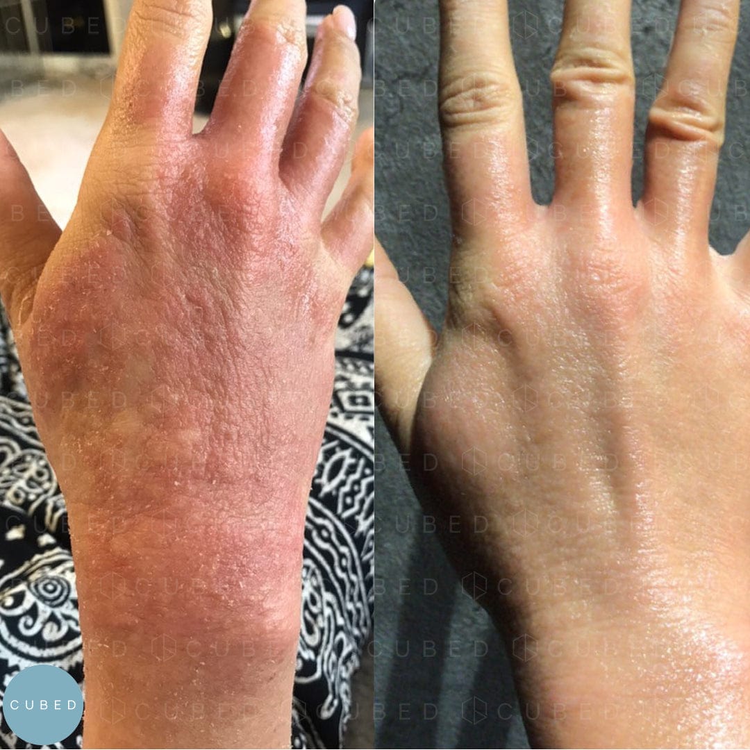 皮膚敏感可能會因不同因素(如天氣轉變、接觸到致敏源、壓力等)造成翻發。因為CUBED產品為非藥性護膚品,建議將產品加入日常護膚程序長期使用,幫助穩定肌膚、減少翻發,以及減少突發皮膚問題。